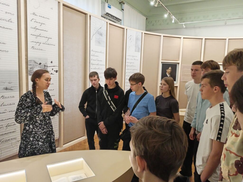 После знакомства с картиной «Бурлаки на Волге» 9-классники посетили выставочный проект «Судьба одна на всех. Защитникам Отечества посвящается», приуроченный к 80-летию Победы в Великой Отечественной войне.